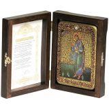 Инкрустированная настольная икона Святой апостол Андрей Первозванный (10*15 см, Россия) на натуральном мореном дубе, в подарочной коробке