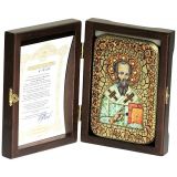 Инкрустированная настольная икона Святой апостол Родион (Иродион), епископ Патрасский (10*15 см, Россия) на натуральном мореном дубе, в подарочной коробке