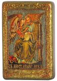 Инкрустированная настольная икона Святой апостол и евангелист Лука (10*15 см, Россия) на натуральном мореном дубе, в подарочной коробке