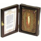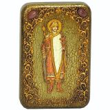 Инкрустированная настольная икона Святой благоверный князь Борис (10*15 см, Россия) на натуральном мореном дубе, в подарочной коробке