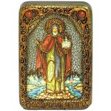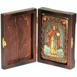 Инкрустированная настольная икона Святой благоверный князь Даниил Московский (10*15 см, Россия) на натуральном мореном дубе, в подарочной коробке