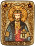 Инкрустированная настольная икона Святой князь Владислав Сербский (15*20 см, Россия) на мореном дубе, в подарочной коробке