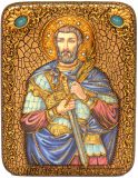 Инкрустированная настольная икона Святой мученик Анатолий Никомидийский (15*20 см, Россия) на мореном дубе, в подарочной коробке