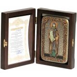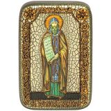 Инкрустированная настольная икона Святой равноапостольный Кирилл Философ (10*15 см, Россия) на натуральном мореном дубе, в подарочной коробке