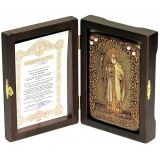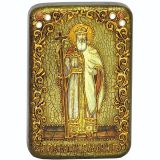 Инкрустированная настольная икона Святой равноапостольный князь Владимир (10*15 см, Россия) на натуральном мореном дубе, в подарочной коробке