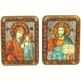 Если вы не знаете, какие иконы подарить на венчание, выберите этот замечательный набор икон Богоматери Казанской и Спасителя.