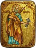 Инкрустированная подарочная икона Первоверховный апостол Петр (15*20 см, Россия) на натуральном мореном дубе в подарочной коробке