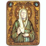 Инкрустированная рукописная икона Блаженная старица Матрона Московская (15*20см, Россия) на натуральном мореном дубе в подарочной коробке