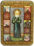Инкрустированная подарочная икона Блаженная старица Матрона Московская (21*29 см, Россия) на натуральном мореном дубе в подарочной коробке
