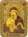 Инкрустированная подарочная икона Донская икона Пресвятой Богородицы (21*29 см, Россия) на натуральном мореном дубе в подарочной коробке