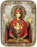 Инкрустированная подарочная икона Образ Божией Матери Неупиваемая чаша (15*20 см, Россия) на натуральном мореном дубе в подарочной коробке