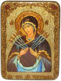 Инкрустированная подарочная икона Образ Божией Матери "Семистрельная" (21*29 см, Россия) на натуральном мореном дубе в подарочной коробке