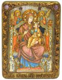 Инкрустированная подарочная икона Образ Божией Матери «Всецарица (Пантанасса)» (21*29 см, Россия) на натуральном мореном дубе в подарочной коробке