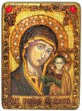 Инкрустированная подарочная икона Образ Казанской Божией Матери (21*29 см, Россия) на натуральном мореном дубе в подарочной коробке