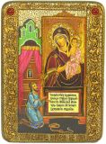 Инкрустированная подарочная икона Образ Пресвятой Богородицы "Нечаянная Радость" (21*29 см, Россия) на натуральном мореном дубе в подарочной коробке