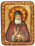 Инкрустированная подарочная икона Преподобный Илия Муромец, Печерский (15*20 см, Россия) на натуральном мореном дубе в подарочной коробке