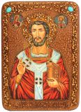 Инкрустированная подарочная икона Священномученик Климент, папа Римский (21*29 см, Россия) на натуральном мореном дубе в подарочной коробке