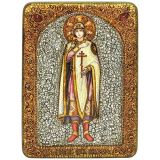 Инкрустированная аналойная икона Святой благоверный князь Глеб (21*29 см, Россия) на натуральном мореном дубе, в подарочной коробке