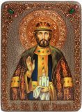 Инкрустированная подарочная икона Святой благоверный князь Олег Брянский (21*29 см, Россия) на натуральном мореном дубе в подарочной коробке