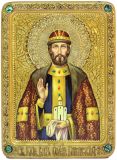 Инкрустированная подарочная икона Святой благоверный князь Олег Брянский (21*29 см, Россия) на натуральном кипарисе в подарочной коробке