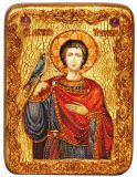 Инкрустированная подарочная икона Святой мученик Трифон (15*20 см, Россия) на натуральном мореном дубе в подарочной коробке