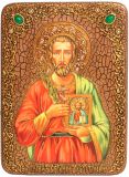 Инкрустированная подарочная икона Святой мученик Евгений Севастийский (21*29 см, Россия) на натуральном мореном дубе в подарочной коробке