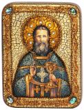 Инкрустированная подарочная икона Святой праведный Иоанн Кронштадтский (15*20 см, Россия) на натуральном мореном дубе в подарочной коробке
