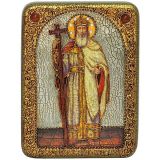Инкрустированная подарочная икона Святой равноапостольный князь Владимир (15*20 см, Россия) на натуральном мореном дубе в подарочной коробке