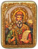 Инкрустированная подарочная икона Святой равноапостольный князь Владимир (15*20 см, Россия) на натуральном мореном дубе в подарочной коробке