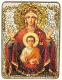 Инкрустированная подарочная икона Образ Божией Матери Знамение (15*20 см, Россия) на натуральном мореном дубе в подарочной коробке