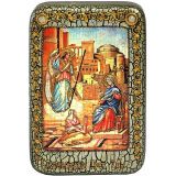 Инкрустированная рукописная икона Благовещение Пресвятой Богородицы (10*15 см, Россия) на натуральном мореном дубе, в подарочной коробке