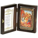 К каждой иконе прилагается индивидуальное номерное свидетельство с полной информацией о ней. Каждая икона поставляется в подарочной шкатулке из натурального дерева.