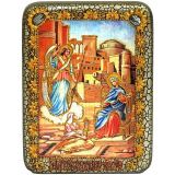 Инкрустированная рукописная икона Благовещение Пресвятой Богородицы (15*20 см, Россия) на натуральном мореном дубе, в подарочной коробке