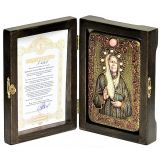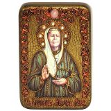 Инкрустированная рукописная икона Блаженная старица Матрона Московская (10*15 см, Россия) на натуральном мореном дубе в подарочной коробке