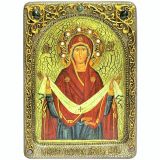 Инкрустированная Живописная икона Образ Божией Матери «Покров» (21*29 см, Россия) на натуральном мореном дубе, в подарочной коробке
