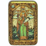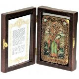 Инкрустированная рукописная икона Святая мученица Параскева Пятница (10*15 см, Россия) на натуральном мореном дубе в подарочной коробке