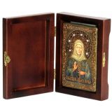 Инкрустированная рукописная икона Святая мученица Параскева Пятница (10*15 см, Россия) на натуральном мореном дубе в подарочной коробке