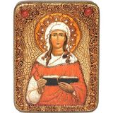 Инкрустированная рукописная икона Святая мученица Валентина Кесарийская (15*20 см, Россия) на натуральном мореном дубе, в подарочной коробке