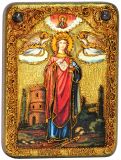 Инкрустированная рукописная икона Святая великомученица Варвара Илиопольская (15*20 см, Россия) на натуральном мореном дубе в подарочной коробке