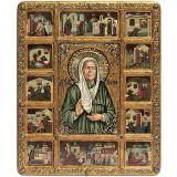Инкрустированная Живописная икона Блаженная старица Матрона Московская с житийными сценами (54*44 см, Россия) на сакральном кипарисе в подарочной коробке