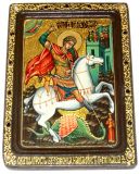 Инкрустированная Живописная икона Чудо святого Георгия о змие (21*29 см, Россия) на натуральном кипарисе в подарочной коробке