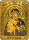 Инкрустированная живописная икона Феодоровская икона Божией Матери (21*29 см, Россия) на натуральном кипарисе в подарочной коробке