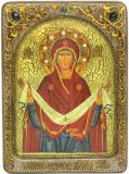 Инкрустированная живописная икона Образ Божией Матери "Покров" (21*29 см, Россия) на натуральном мореном дубе в подарочной коробке
