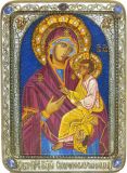 Инкрустированная живописная икона Образ Божией матери "Скоропослушница" (21*29 см, Россия) на натуральном мореном дубе в подарочной коробке