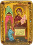 Инкрустированная живописная икона Образ Пресвятой Богородицы "Нечаянная Радость" (21*29 см, Россия) на натуральном кипарисе в подарочной коробке
