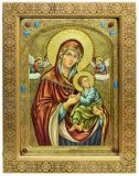 Инкрустированная живописная икона Образ Пресвятой Богородицы «Страстная» (29*42 см, Россия) на натуральном кипарисе в подарочной коробке