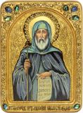 Инкрустированная живописная икона Преподобный Антоний Великий (21*29 см, Россия) на натуральном мореном дубе в подарочной коробке
