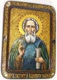 Инкрустированная Живописная икона Преподобный Сергий Радонежский чудотворец (21*29 см, Россия) на натуральном кипарисе в подарочной коробке