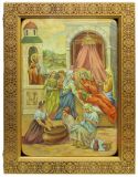Инкрустированная живописная икона Рождество Пресвятой Богородицы (29*42 см, Россия) на натуральном кипарисе в подарочной коробке