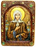 Инкрустированная Живописная икона Святая Блаженная Ксения Петербургская (21*29 см, Россия) на натуральном кипарисе в подарочной коробке